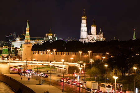 Night view of Moscow Kremlin and Moscow River in Moscow. Russia