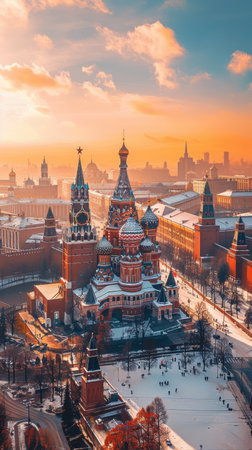 Saint Basil Cathedral in Red Square in winter at sunset Moscow, Russia.