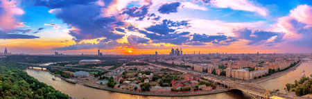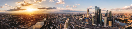 Summer sunset over Moscow districts and high-rise buildings