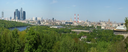 Panoramic view from the hills of Vorobyovy Gory to the city of Moscow.