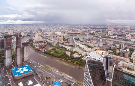Aerial view of center of Moscow from observation deck Federation Tower in International Business Center (City), Russia. 89 floor, Panorama 360 - the highest observation platform in Europe