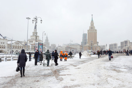 MOSCOW, RUSSIA - JAN. 2016: View of the Moskva-Siti district and the Bagration bridge in Moscow. Winter day