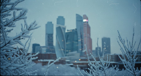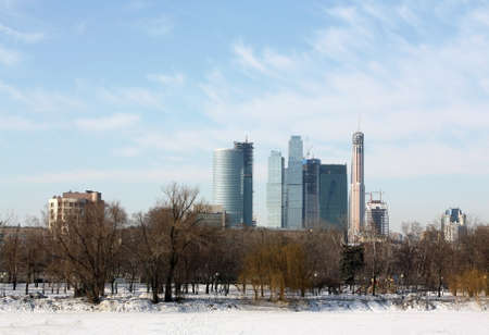 Moscow winter panorama with old and new buildings