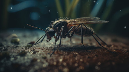 This detailed close-up image showcases a mosquito, highlighting its intricate features and dramatic lighting, perfect for educational or artistic uses.