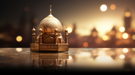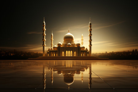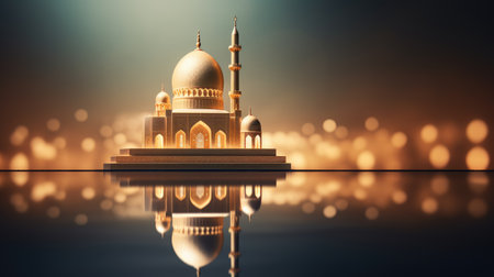 3d illustration of mosque and reflection on water. Ramadan Kareem background