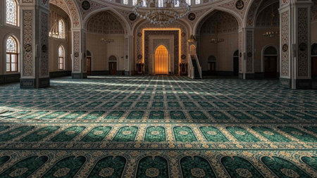 Beautiful Mosque Interior view Ramadan and Eid al Adha concept Islamic Background.