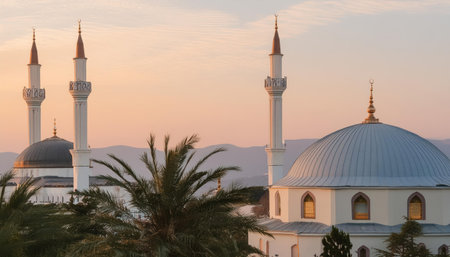 beautiful mosque against a pure serene and divine atmosphere professional photography