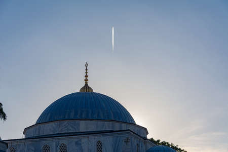 Dome of the mosque at sunset. Ramadan Kareem background.