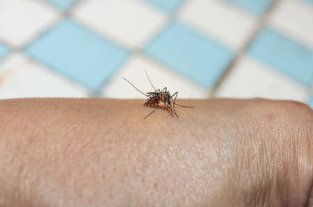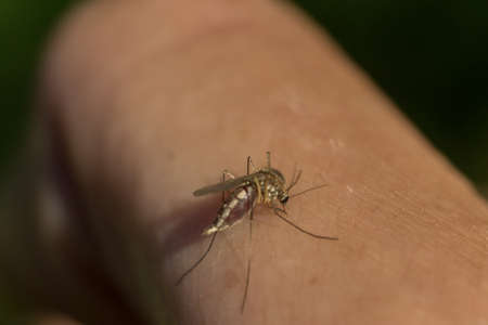Mosquito (Culex pipiens) feeds on the blood of the human body