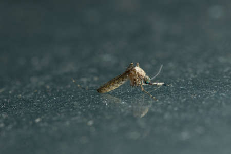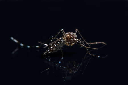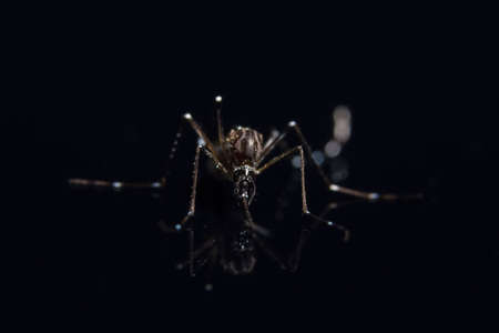 The mosquito sits on the surface. Mosquito on a black background. mosquito is the cause of dengue fever, malaria, Zika fever.