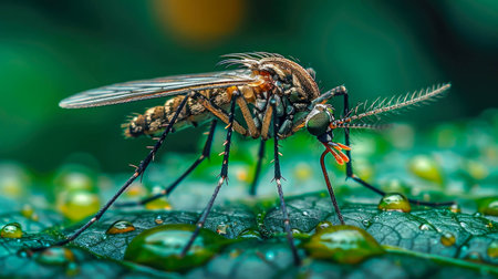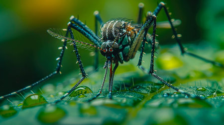 A closeup shot of a mosquito on a green leaf. Ai-generated.