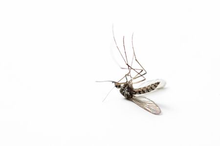 Macro of mosquito (Aedes aegypti) . Mosquito is carrier of Malaria, Encephalitis, Dengue and Zika virus, isolated on white background
