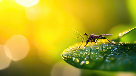 A closeup shot of a mosquito on a green leaf. Ai-generated.