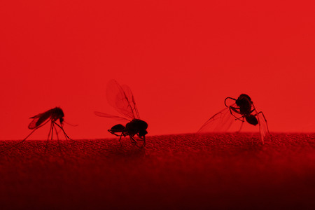 mosquito on human skin in the dark