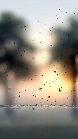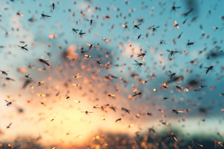 Mosquitoes flying in warm sunlight creating a serene atmosphere for nature lovers concept
