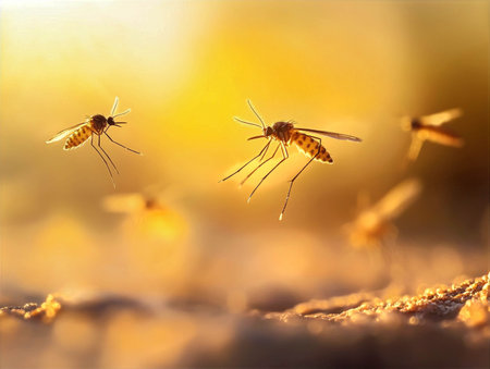 Close-up of sunlit mosquitoes raises malaria transmission concerns in tropics
