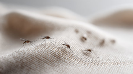 Mosquitoes resting on white cloth highlight the threat of diseases like malaria, dengue, and zika, underscoring the need for effective mosquito control and prevention