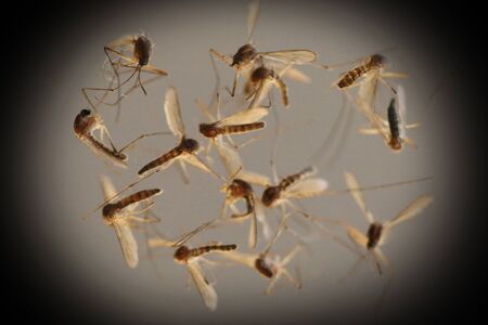 Many of dead mosquitoes on a white background.