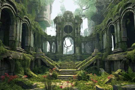 ancient ruin, filled with hidden secrets and puzzles, waiting to be discovered, created with generative ai