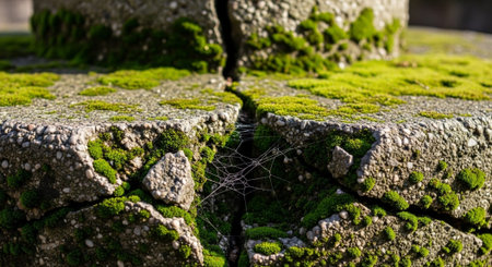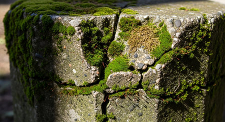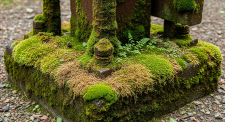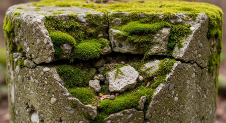 a stone archway covered in vibrant moss and lichen, created with generative ai