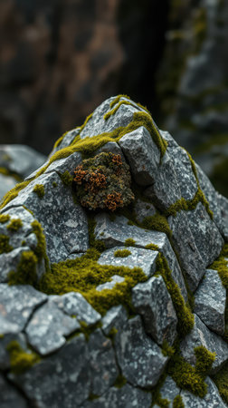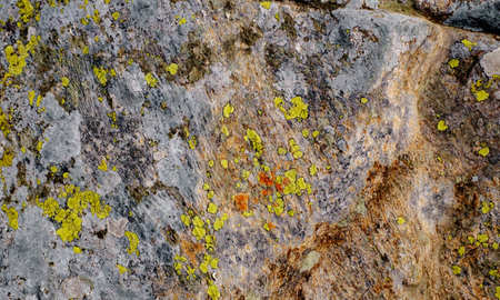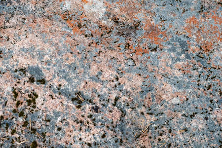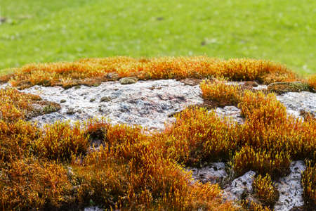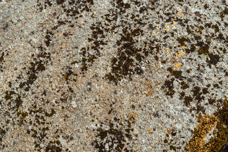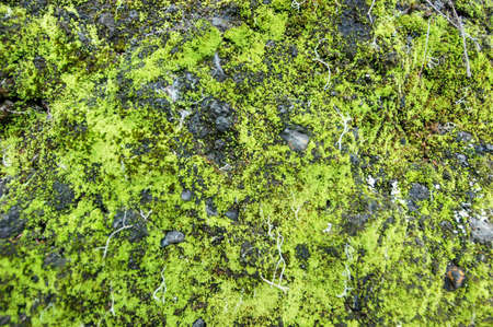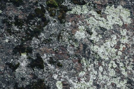 Mossy stone surface, close up. Colorful mystic fairy rock with lichen.