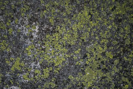 Lichen on a green stone. natural background. Stones boulders covered with moss and fungus.Nature background. Moss, fungus on stone closeup. Relief and texture of stone with patterns and moss