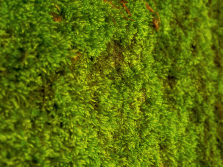 Fine green moss, Ctenidium species, growing in forest on tree, closeup macro detail