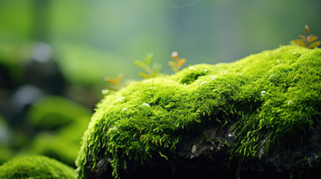 Lush green moss growing on a rock with a soft natural background