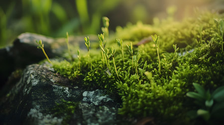 Lush green moss and sprouts in a forest setting