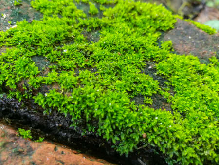 Green moss in the garden. Selective focus. Shallow depth of field.