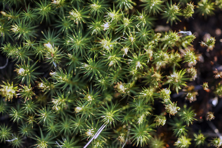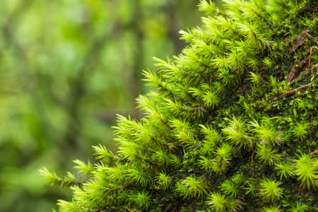 Close up of green moss in the forest. Shallow depth of field.