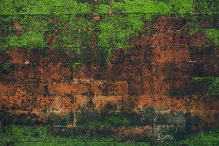 Green moss grows up covering the old wall. Displayed with a macro view Old walls that are full of moss
