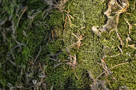 Close-up of the texture of moss and mold on the surface of a tree, macro photography of the microcosm of plants. Beautiful soft focus is behind.