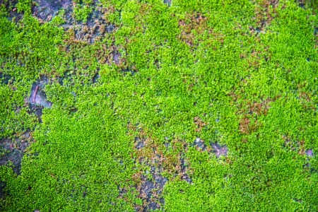 Green Moss or lichen on old wall nature background.