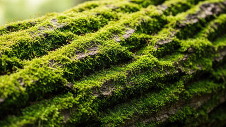 macro view of green moss on tree trunk, in shaded forest, created with generative ai