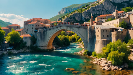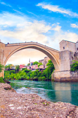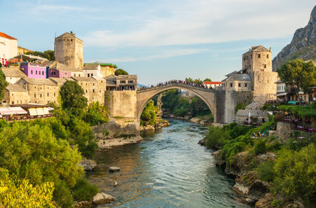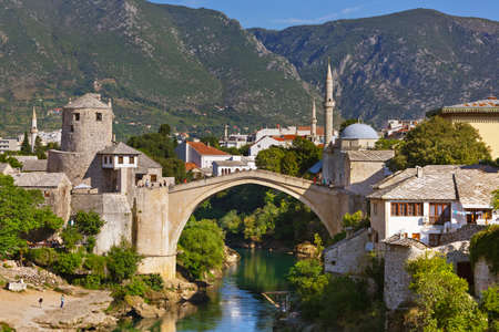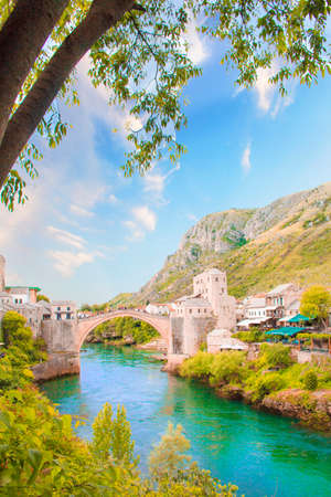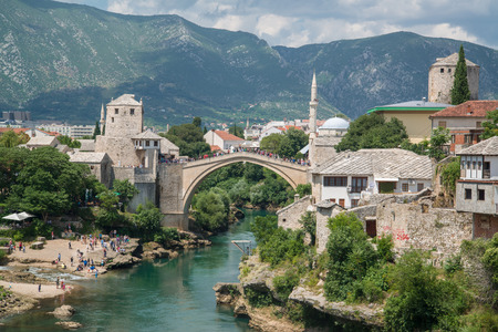 The Old Bridge in Mostar in a beautiful summer day, Bosnia and Herzegovina