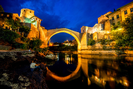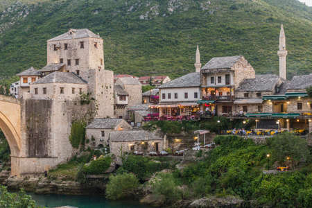 Evening view of Stari most (Old Bridge) in Mostar. Bosnia and Herzegovina