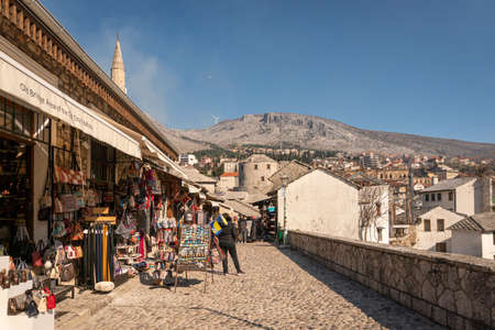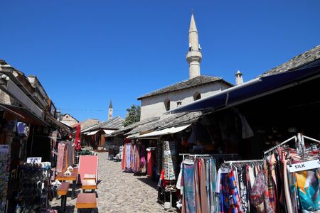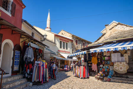 Mostar city in Bosnia and Herzegovina. Old Town souvenir shops.