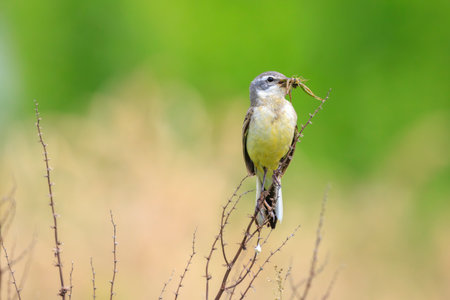 Yellow Wagtail (Motacilla flava iberiae) with insects in the beak.