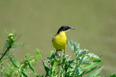 Western yellow wagtail.Yellow Wagtail - small slender bird motacillidae family that lives in the vast territory of Europe, Asia, Africa and Alaska.