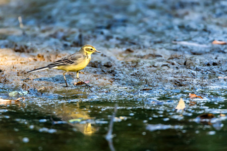 Western Yellow Wagtail or Motacilla flava near water