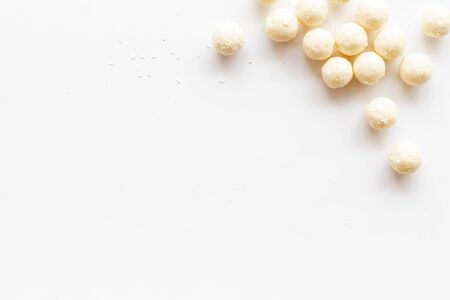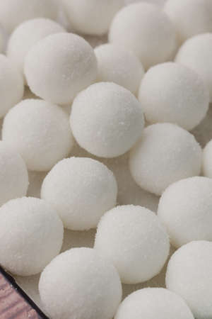 White bath balls scrubs with sugar background, close up. natural cosmetics for body and face care