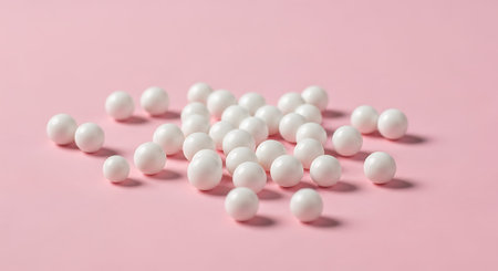 Macro shot of miniature foam balls used in slime or vase fillers, vibrant and tactile