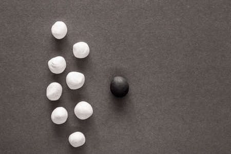 Many white plasticine balls formed around a black one. Concepts of white racism and oppresion against african americans. Black lives matter