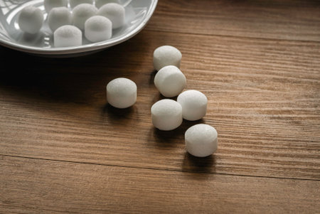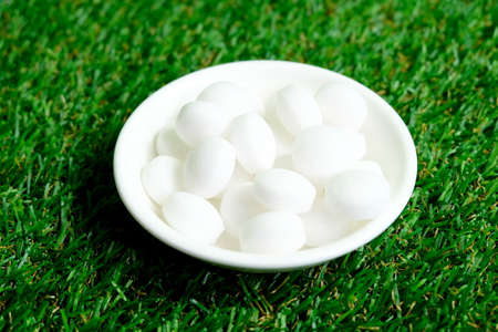 close up of camphor pill on red background. camphor isolated view. use for clean environment, healthcare, worship, praying. To make the environment cleaner. To cure illness.