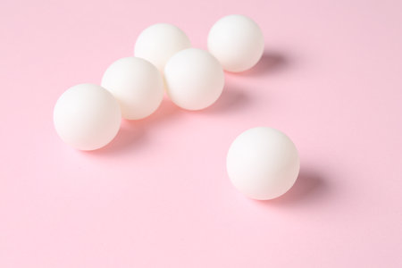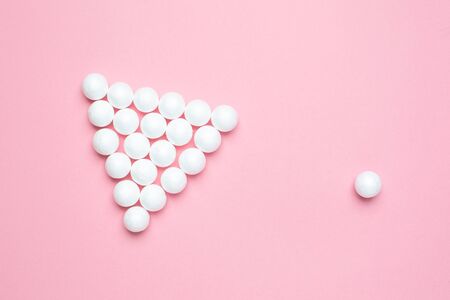 White foam plastic balls on pink background. Think different concept or Leadership concept. Billiards concept