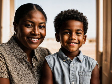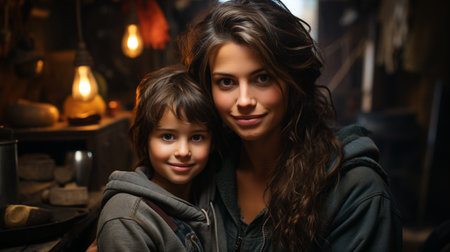 In this heartwarming image, a loving mother embraces her child with warmth and tenderness, forming a beautiful bond filled with joy, security, and the purest form of maternal love