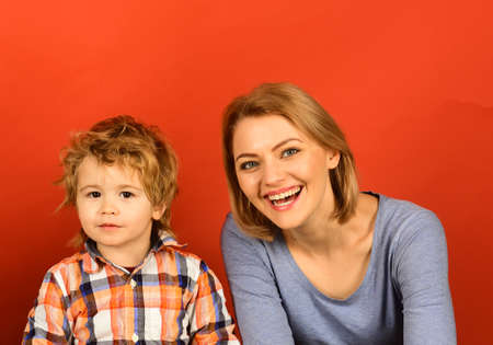 Portrait of a happy mother and her young son. mother and little boy play, selective focus