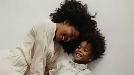 A mother and her child share an infectious laugh in a candid moment of pure joy.