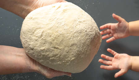 Homemade making dough of pizza, pierogi. Preparation dough for cooking